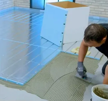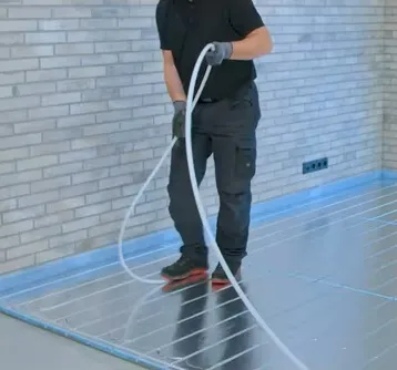 바닥 난방 파이프는 유 모양의 홈에 삽입되어 파이프가 고르게 스트레스를 받고 물 흐름이 방해받지 않도록 통합됩니다.
